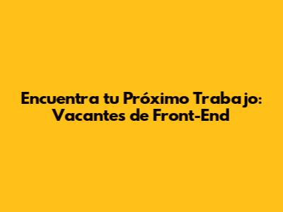 Encuentra Tu Próximo Trabajo: Vacantes De Front-End
