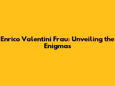 Enrico Valentini Frau: A Deep Dive