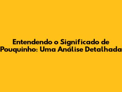O Que Exatamente Significa "Pouquinho"?