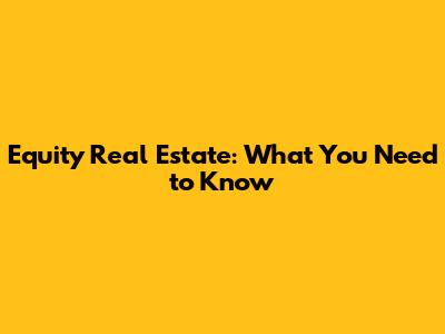 Equity Real Estate: What You Need To Know