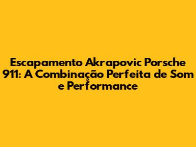 Escapamento Akrapovic Porsche 911: Som E Performance