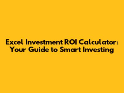 Excel Investment ROI Calculator: Your Guide To Smart Investing