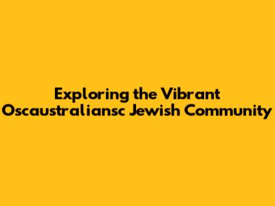 Exploring The Vibrant Oscaustraliansc Jewish Community