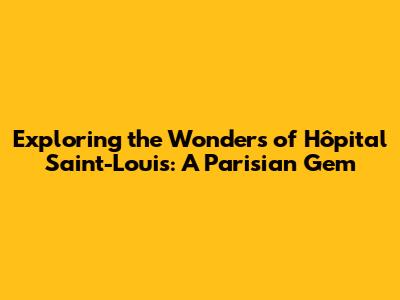 Exploring The Wonders Of Hôpital Saint-Louis: A Parisian Gem