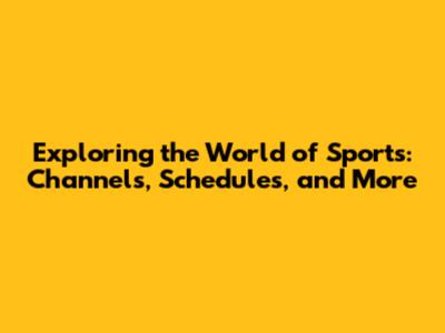 Exploring The World Of Sports: Channels, Schedules, And More