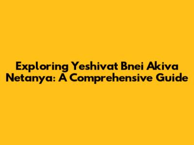 Exploring Yeshivat Bnei Akiva Netanya: A Comprehensive Guide