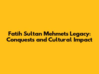 Fatih Sultan Mehmet's Legacy: Conquests And Cultural Impact