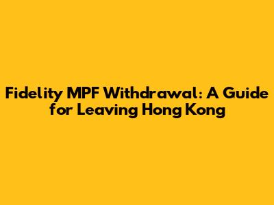 Fidelity MPF Withdrawal: A Guide For Leaving Hong Kong