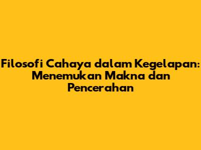 Filosofi Cahaya Dalam Kegelapan: Menemukan Makna Dan Pencerahan