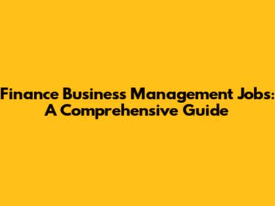 Finance Business Management Jobs: A Comprehensive Guide