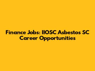 Finance Jobs: IIOSC Asbestos SC Career Opportunities
