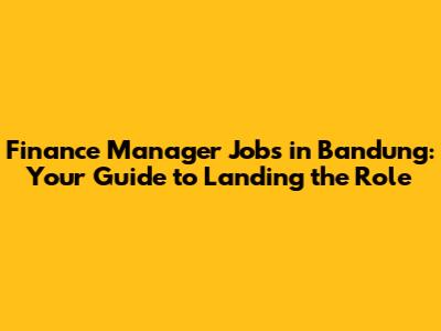 Finance Manager Jobs In Bandung: Your Guide To Landing The Role