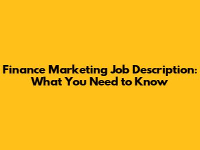 Finance Marketing Job Description: What You Need To Know