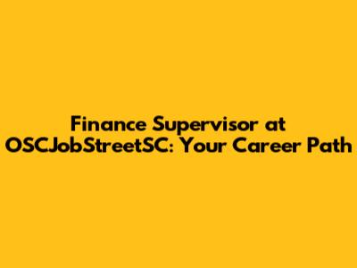 Finance Supervisor At OSCJobStreetSC: Your Career Guide