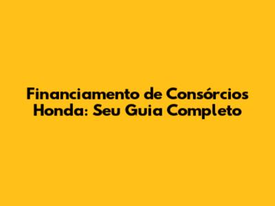 Financiamento De Consórcios Honda: Seu Guia Completo