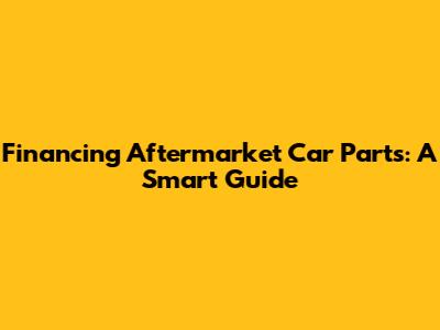Understanding Aftermarket Car Parts and the Need for Financing