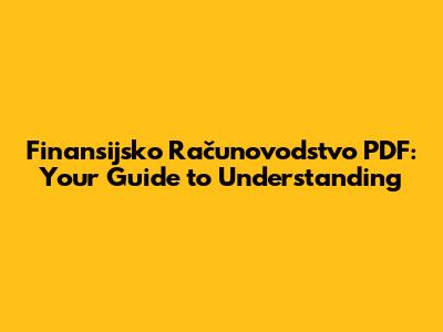 Hey guys! Ever wondered about the fascinating world of finansijsko računovodstvo? Or maybe you're drowning in textbooks and desperately seeking a clear, concise PDF to guide you through? Well, you've come to the right place! Let's dive into what finansijsko računovodstvo is all about, why it's super important, and how you can find the perfect PDF to boost your understanding. Finansijsko računovodstvo, at its core, is the process of recording, summarizing, and reporting a company's financial transactions. Think of it as the language of business – it translates all the complex activities of a company into a standardized format that anyone can understand. This understanding isn't just for internal use; it's crucial for external stakeholders like investors, creditors, and regulatory bodies. These folks rely on financial statements to make informed decisions about the company, such as whether to invest, lend money, or ensure compliance.
