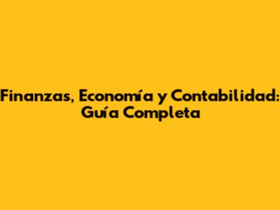 Finanzas, Economía Y Contabilidad: Guía Completa
