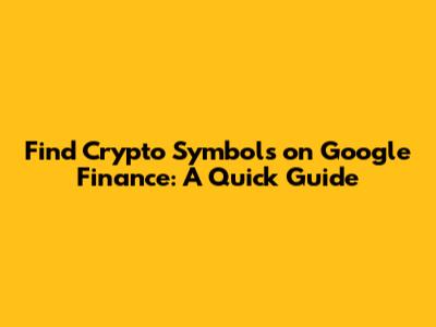 Find Crypto Symbols On Google Finance: A Quick Guide