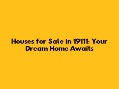Find Houses For Sale In 19111: Your Dream Home Awaits
