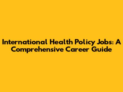 Find International Health Policy Jobs: Career Guide