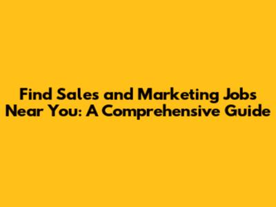 Find Sales And Marketing Jobs Near You: A Comprehensive Guide