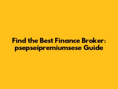 Find The Best Finance Broker: Psepseipremiumsese Guide