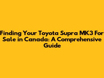 Finding a Toyota Supra MK3 for sale in Canada requires patience, research, and a keen eye. By following this guide, you'll be well-equipped to navigate the market and find your dream car. Enjoy the process, and happy hunting!
