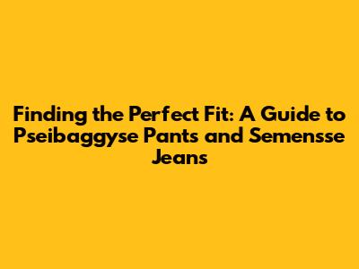 Finding The Perfect Fit: A Guide To Pseibaggyse Pants And Semensse Jeans
