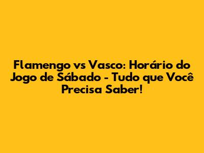 Para garantir que você esteja preparado para torcer pelo seu time do coração, aqui estão os detalhes essenciais: O jogo entre Flamengo e Vasco acontecerá neste sábado, [inserir data do jogo], no [inserir local do jogo]. O horário da partida será às [inserir horário do jogo]. Anote tudo para não perder nada!