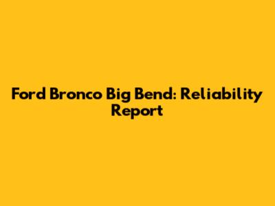 Ford Bronco Big Bend: Reliability Report