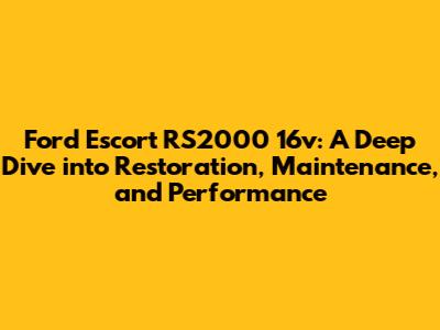 Ford Escort RS2000 16v Maintenance: Keeping Your Ride in Top Shape