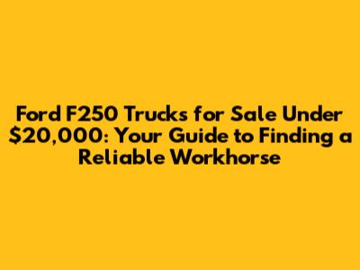 Hey everyone, are you on the hunt for a Ford F250 but trying to keep that budget in check? You've come to the right place! Finding a Ford F250 for sale under $20,000 can seem like a daunting task, but trust me, it's totally doable. This guide is designed to walk you through everything you need to know, from where to look, what to look for, and how to snag a great deal on a Ford F250. Let's dive in and get you behind the wheel of a heavy-duty truck without emptying your wallet.