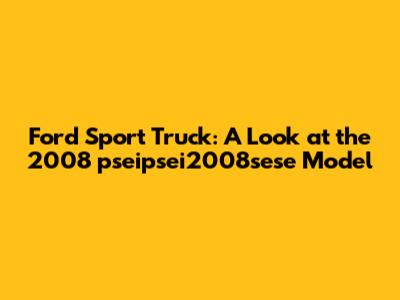Is the 2008 pseipsei2008sese Ford Sport Truck Right for You?