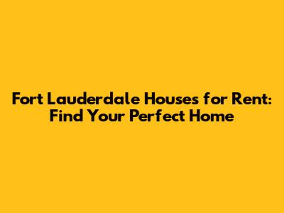 Fort Lauderdale Houses For Rent: Find Your Perfect Home