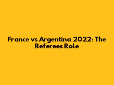 France Vs Argentina 2022: The Referee's Role