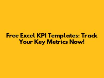 Free Excel KPI Templates: Track Your Key Metrics Now!