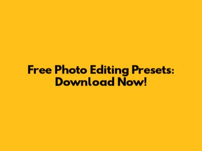 Free Photo Editing Presets: Download Now!