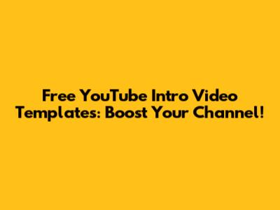 Free YouTube Intro Video Templates: Boost Your Channel!