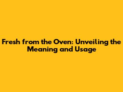 Fresh From The Oven: Meaning And Usage Explained