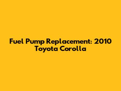 Hey guys! Today, we're diving deep into the nitty-gritty of fuel pump replacement for a 2010 Toyota Corolla. If you're experiencing issues like difficulty starting, sputtering, or a sudden loss of power while driving, chances are your fuel pump might be on its last leg. Don't worry; we've got you covered with a comprehensive guide that will walk you through everything you need to know. Whether you're a seasoned DIY enthusiast or just starting, this article will equip you with the knowledge to tackle this repair with confidence. The fuel pump is a critical component of your vehicle's fuel system, responsible for delivering fuel from the gas tank to the engine. A failing fuel pump can lead to a variety of performance issues, so it's essential to address the problem promptly. In this guide, we'll cover common symptoms of a failing fuel pump, the tools and parts you'll need for the replacement, a step-by-step procedure for the replacement process, and some valuable tips to ensure a successful repair.