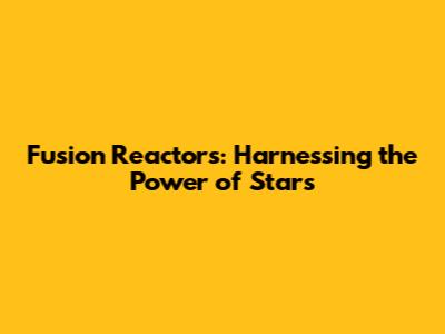 Fusion Reactors: Harnessing The Power Of Stars