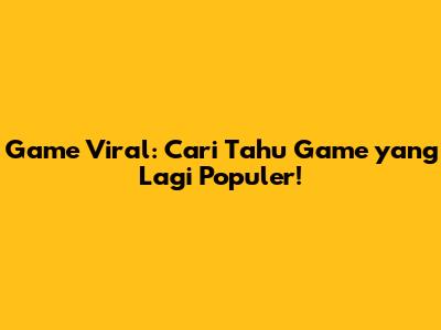 Game Viral: Cari Tahu Game Yang Lagi Populer!