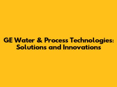 GE Water & Process Technologies: Solutions And Innovations