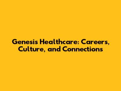 Genesis Healthcare: Careers, Culture, And Connections