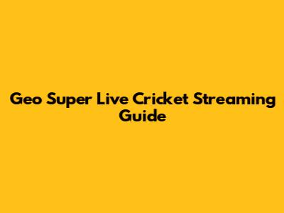 Geo Super Live Cricket Streaming Guide
