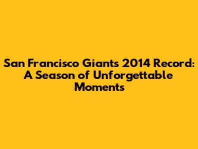 The 2014 season of the San Francisco Giants was a special year in baseball history. From the rollercoaster regular season to the dramatic playoff run and the ultimate triumph in the World Series, it was a season filled with unforgettable moments, clutch performances, and the unwavering spirit of a team that refused to quit. The San Francisco Giants 2014 record tells a story of perseverance, teamwork, and the magic of baseball. It's a testament to the power of belief, the importance of leadership, and the enduring impact of a team that captivated the hearts of fans around the world. As we look back on this remarkable season, we remember the heroes, the defining moments, and the lasting legacy of a team that will forever be remembered as champions. The 2014 Giants will be remembered for their achievements on the field and for the joy and inspiration they brought to so many people. It was a season that showcased the best of baseball, reminding us why we love the game and the unique ability of sports to bring people together. Thanks to these Giants, we got to experience a season we'll never forget.