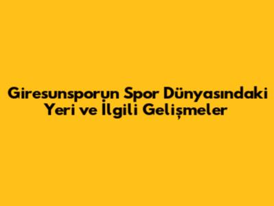 Giresunspor'un Spor Dünyasındaki Yeri Ve İlgili Gelişmeler