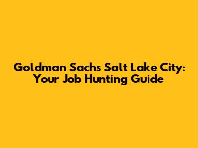 Goldman Sachs Salt Lake City: Your Job Hunting Guide