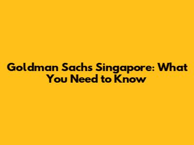 Goldman Sachs Singapore: What You Need To Know